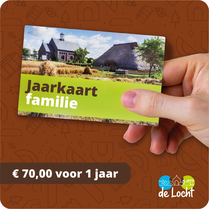 Met deze kaart heb je als (groot-)ouders met maximaal 3 (klein-)kinderen tussen 7 – 16 jaar gedurende een jaar toegang tot Openluchtmuseum de Locht.